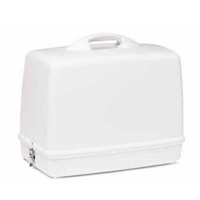 Singer 611 Carrying Case... Durable, impact-resistant plastic case for storing most sewing and overlock machines; Compatible with all brands of free-arm sewing and overlock machines; Dust-free environment and protection for your machine while it's not in use; Safety "sure-lock" metal latches for added protection; Lightweight for easy carrying; Durable impact-resistant plastic; Dimensions: 18"W x 10"D x 15-1/2"H.